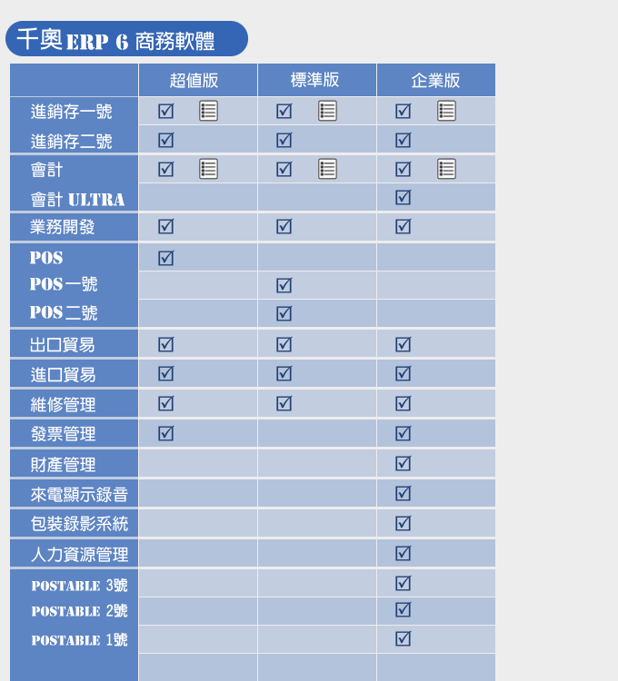 進銷存 功能比較表–ERP6 超值版VS實用版 [展開閱讀]
